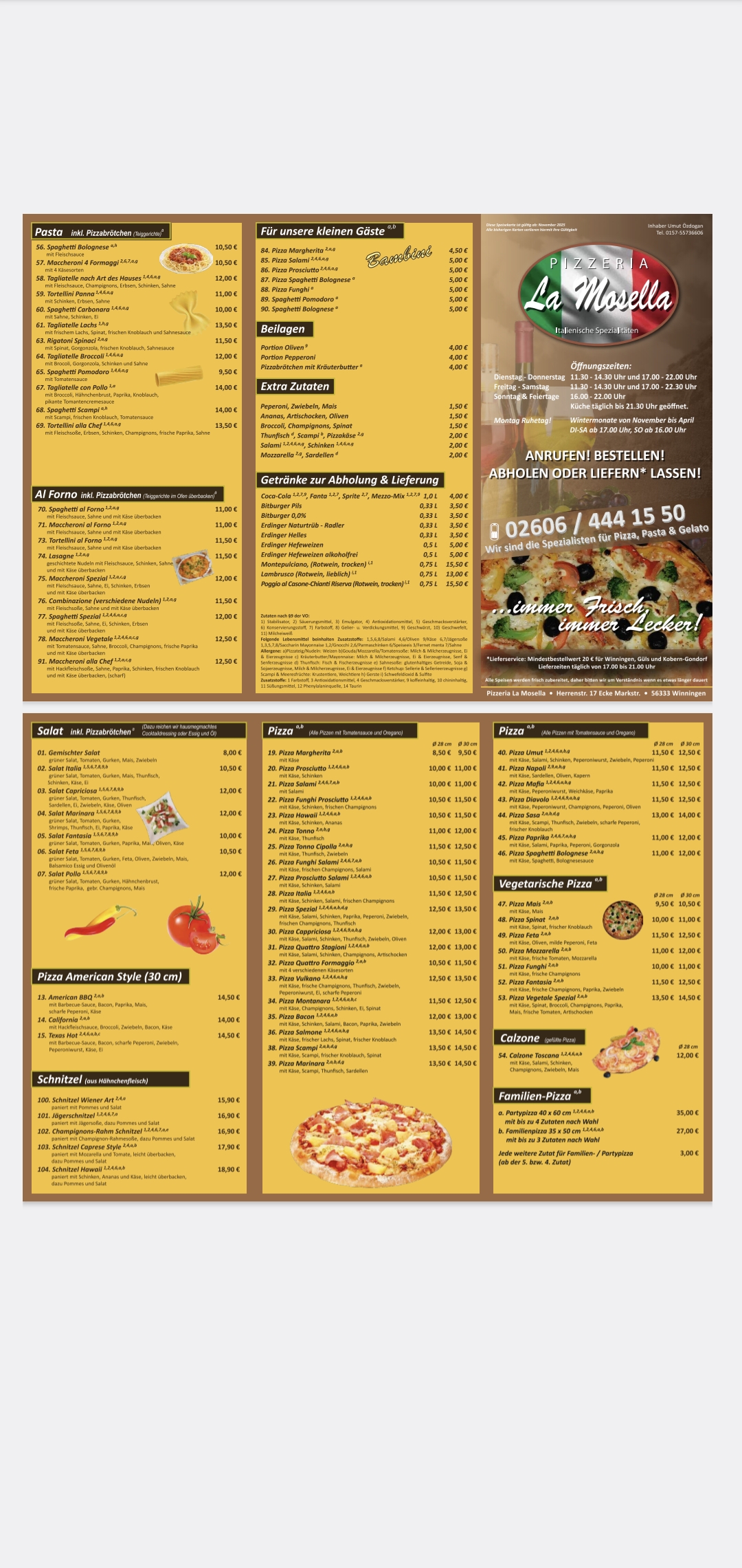 ANRUFEN +4926064441550Verbringen Sie in unserem Restaurant einen Abend mit hausgemachter italienischer Küche mit all ihren Facetten. Wir heißen Sie herzlich willkommen im „Pizzeria La Mosella“. Genießen Sie schmackhafte Speisen und das wunderschöne Ambiente in unserem Lokal. nn Unsere Küche achtet auf eine vegetarische Zubereitung der Speisen und bietet dennoch eine beeindruckende Vielfalt. Wir wollen es Ihnen so einfach wie möglich machen, Ihre Gesundheit beim Essen immer im Auge zu behalten und Ihr Bewusstsein dafür zu stärken, wie lecker gesunde Speisen sein können.nn Absolute Entspannung bietet an warmen Tagen unser gemütlicher Außenbereich. Besonders gemütlich: Da unsere Räume bestens klimatisiert sind, können Sie Ihren Besuch bei jeder Temperatur genießen.